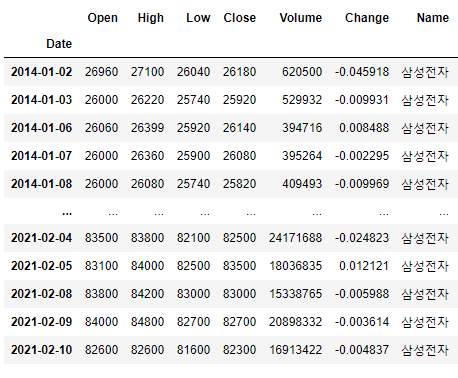 삼성전자 가격 데이터입니다. 이것을 df로 하고 구해보겠습니다.