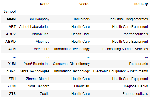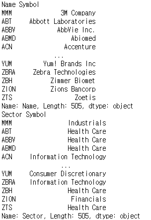 이번에 준비한 데이터는 sp500의 종목,종목코드,섹터,업종 데이터입니다.