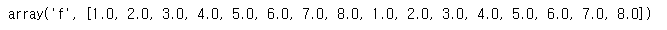 v라는 리스트를 array로 바꾸었습니다. 'f'는 float을 의미합니다.