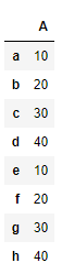 df2 = pd.DataFrame({'A':[10,20,30,40]},index=['e','f','g','h'])