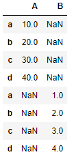 B도 마찬가지로 df1에 없기 때문에 NaN 처리가 된 것을 볼 수 있습니다.
