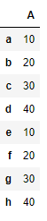 df1 = pd.DataFrame({'A':[10,20,30,40]},index=['a','b','c','d'])