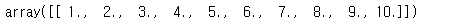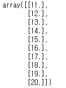 x는 1에서 10까지 y는 11에서 20까지의 1차원 배열입니다.