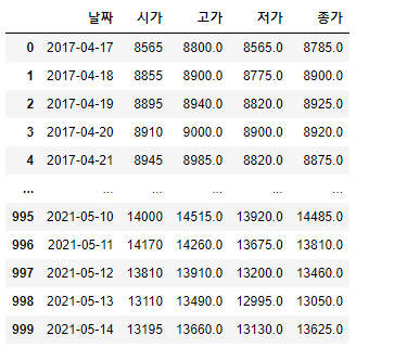 df = df.astype({'시가':'int'}) 또는 df['시가'] = df['시가'].astype(int)