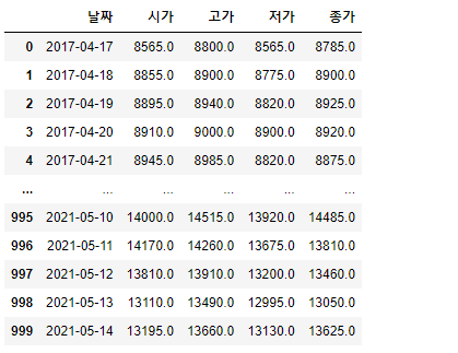 날짜 컬럼을 index로 넘겨놓고 진행을 합니다.