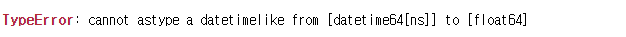 현재 df의 숫자들이 int64로 되어있는데 float으로 바꾸고 싶어서 변경하려고 할때 심플하게 df.astype('float')을 하면 좋겠으나 날짜 컬럼은 datetime64로 되어있어서 시도를 하면 오류가 발생합니다.