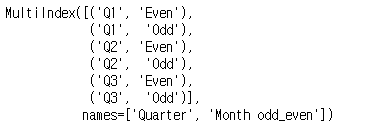 일단 Quarter와 Month odd_even 을 멀티인덱스로 잡으면 다음과 같이 나옵니다.