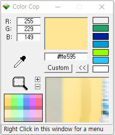 색상 코드를 알아내고 싶다면 Color Cop 을 사용해 외부에 있는 색의 코드를 알아내면 된다.