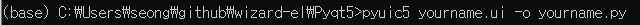 py로 바꿀 ui가 있는 폴더로 이동한 후 다음과 같이 입력합니다.