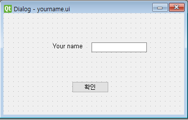 Label 위젯을 가져와 Your name을 만들고 Line edit으로 Your name 옆에 빈칸을 만들었습니다.