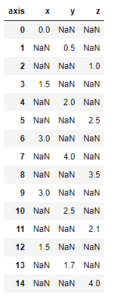 값이 없는 경우에는 NaN 처리가 되었고 x,y,z 와 0,1,2,3,4,5에 따라 어떤 값을 갖는지 한눈에 볼 수 있습니다.