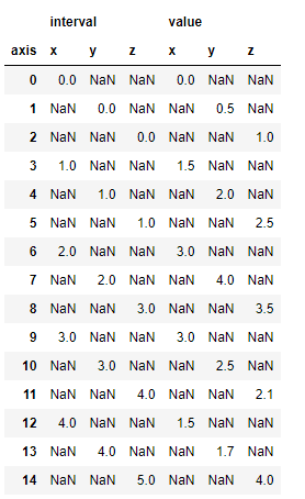 df = pd.DataFrame({'interval':interval,'axis':axis,'value':values})