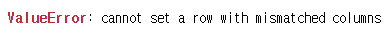 컬럼에 매칭해서 일일히 넣어주어야 하고 딕셔너리로 넣어주어야 하기 때문에 ignore_index=True 를 반드시 넣어주어야 합니다.