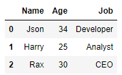 df = pd.DataFrame(sample,columns=['Name','Age','Job'])