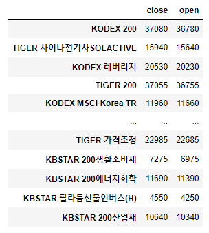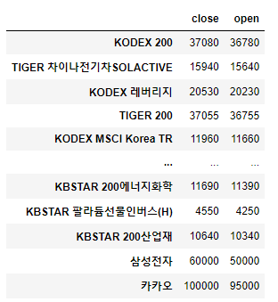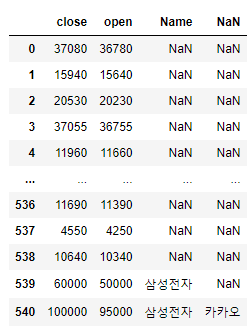데이터프레임은 컬럼만 리스트형태로 가져올 수 있으니