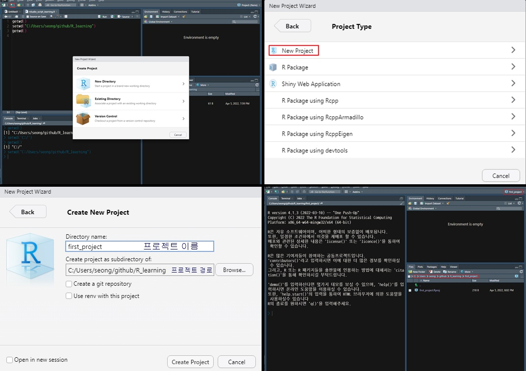 R은 데이터분석을 위한 목적이 대부분이라서 크게 4가지 부분으로 폴더를 나누면 됩니다.