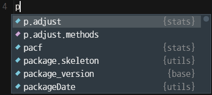 내가 쓸 함수의 스펠링을 까먹었거나 잘 모르면 Tab을 눌러 함수를 가져올 수 있습니다.