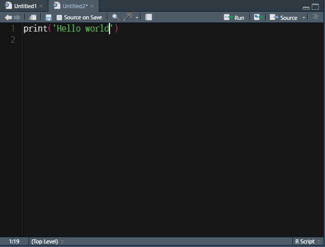 print('Hello world')을 가지고 코드 실행을 해보겠습니다.