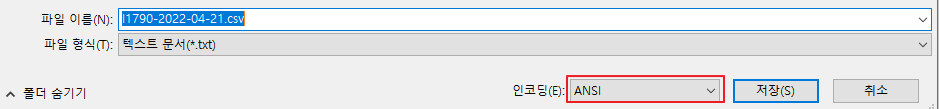 ANSI, CP949, Euc-KR 중 하나로 바꿔줍니다.