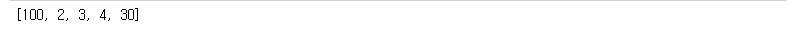 리스트의 0번째와 4번째의 값이 바뀌는 것을 볼 수 있습니다.