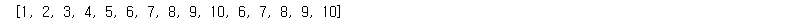 그러면 a.extned(b) 로 리스트는 a = [1,2,3,4,5,6,7,8,9,10]으로 될 것이고,