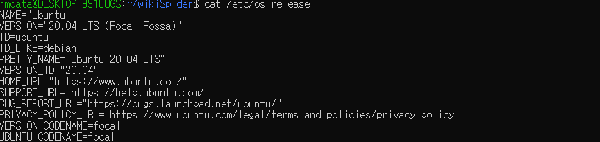 os-release 파일에는 운영 체제에 대한 세부 정보가 포함되어 있습니다. 우분투 url에 대한 정보와 codename을 보다 자세하게 볼 수 있습니다.
