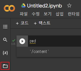 colab에서 디폴트된 폴더가 어딘지 알아서 구글 드라이브를 마운트할 곳을 찾아봅니다.