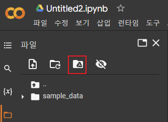 아래 그림에 표시된 빨간 상자( 폴더 안에 구글 드라이브 로고가 있는 아이콘)을 클릭해 구글 드라이브를 마운트합니다.