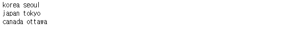 a ={'korea':'seoul','japan':'tokyo', 'canada':'ottawa'}