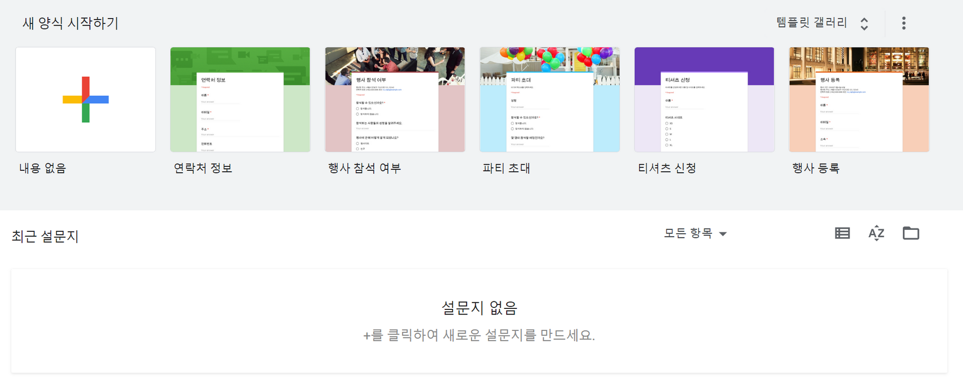 맘에 드는 것을 골라 설문지 만들기를 시작합니다.