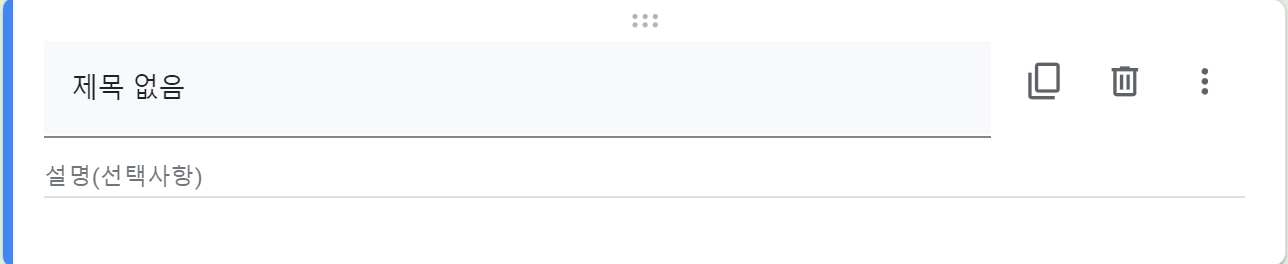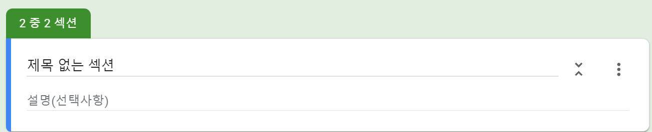 섹션 추가를 하면 질문이 분리되고 섹션이 추가됩니다. 다른 주제로 설문이 시작될 때 유용하게 사용할 수 있습니다.