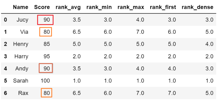 df['rank_min'] = df['Score'].rank(method = 'min',ascending=False)
