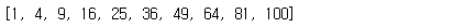빈 리스트를 만들고 for 구문을 이용해 제곱수를 만들고 빈 리스트에 다시 넣어야 하겠지만 그런 과정 없이 효율적으로 쓸수 있습니다.