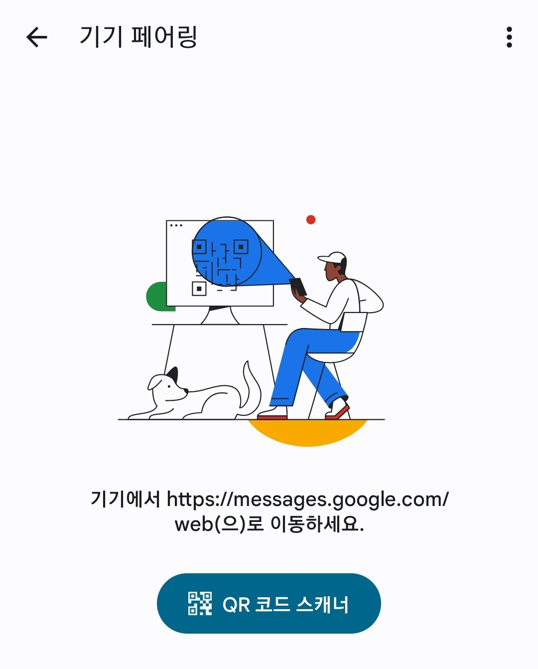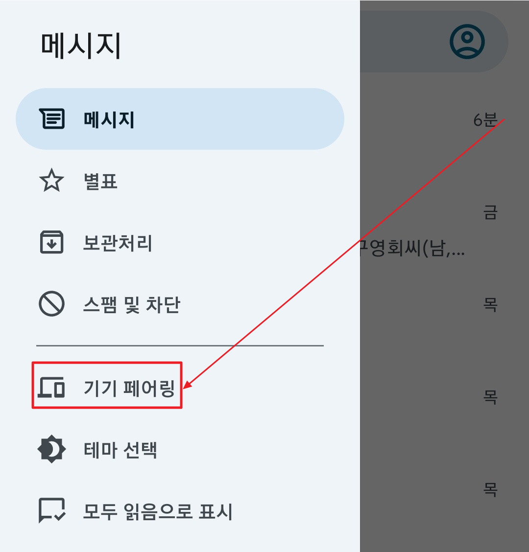그러면 모바일 구글 메시지에서 더보기 - 기기 페어링을 선택합니다.