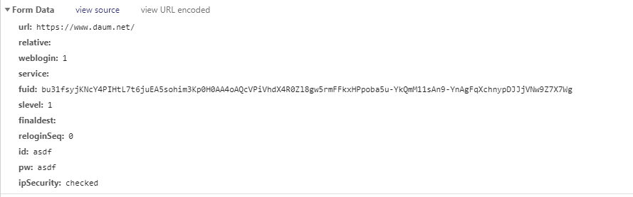 data = { 'url':'https://www.daum.net/','weblogin':'1', 'fuid':'bu31fsyjKNcY4PIHtL7t6juEA5sohim3Kp0H0AA4oAQcVPiVhdX4R0Zl8gw5rmFFkxHPpoba5u-YkQmM11sAn9-YnAgFqXchnypDJJjVNw9Z7X7Wg',