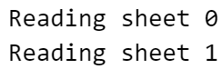 잘 불러와졌다면 위와 같이 Reading이 되었다고 얘기해줍니다. (현재는 단순히 sheet만 불렀지만 제대로 부르려면 dtype이나 engine을 맞춰주는게 좋습니다. 밑에서 확인하시기 바랍니다.)