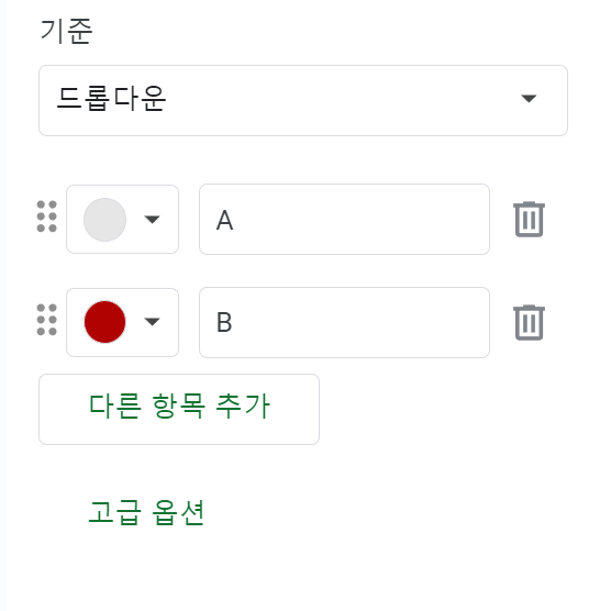 드롭다운을 들어가면 오른쪽에 항목을 쓸 수 있는 란이 나옵니다.
