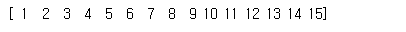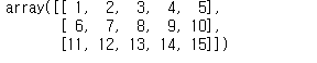 reshape를 이용해서 ndarray의 형태를 바꾸었습니다. 현재 15개의 숫자로 이루어져 있으므로 형태 변경할 때 숫자를 15개를 맞춰서 해야합니다. 그렇지 않으면 오류가 나오니 주의하시기 바랍니다.