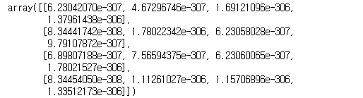 np.empty는 초기값을 생성할 때 씁니다. 모든 값을 제로로 만들지 않으면서 필요한 초기값을 만듭니다.