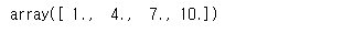 numpy에서도 파이썬의 리스트와 동일한 방법으로 arange함수를 쓸 수 있습니다.