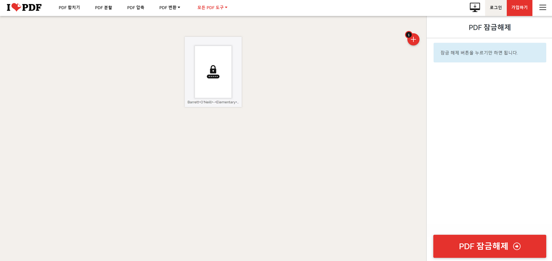 PDF 잠금해제를 눌러줍니다.