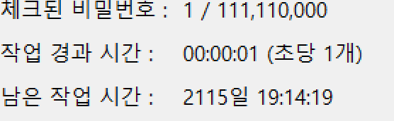 숫자(4~8자리)만 찾는다고 해도 2115일 걸립니다.(물론 그정도 안걸립니다)