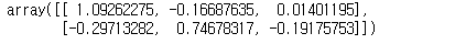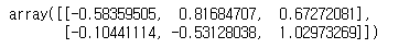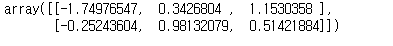 randn 함수는 정규분포로 샘플링된 된 ndarray를 생성합니다. 그래서 -1에서 1 사이의 값들이 랜덤하게 나오면서 생성합니다.