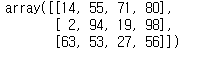 x에서 (2,2) 형태에 맞춰 숫자를 뽑아 ndarray를 생성합니다. 여기서 x는 반드시 ndarray일 필요는 없고 list여도 상관없습니다.