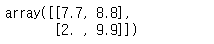x= np.array([1,2,3,4,5,6,7.7,8.8,9.9])