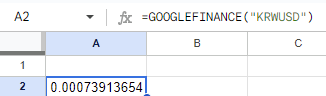 GOOGLEFINANCE('USDKRW')를 입력하면 됩니다.
