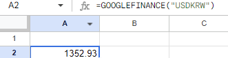 GOOGLEFINANCE('USDKRW') - 유로 환율