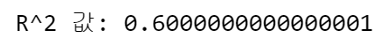 print(f"R^2 값: {r_squared}")