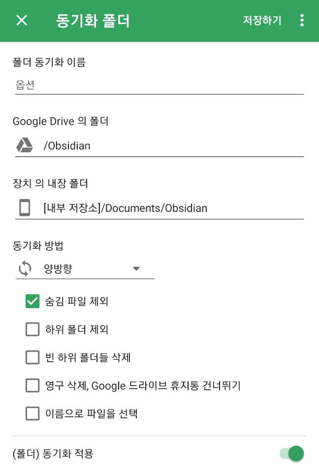 안드로이드 폴더 구글드라이브로 자동 동기화하기(feat.옵시디언)