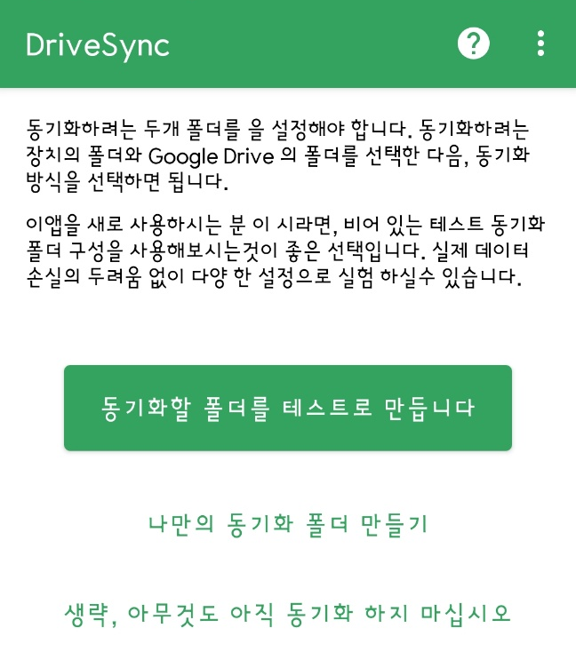 저는 준비된게 없어서 test를 클릭했더니 DriveSync files 폴더를 알아서 만들어주었습니다.